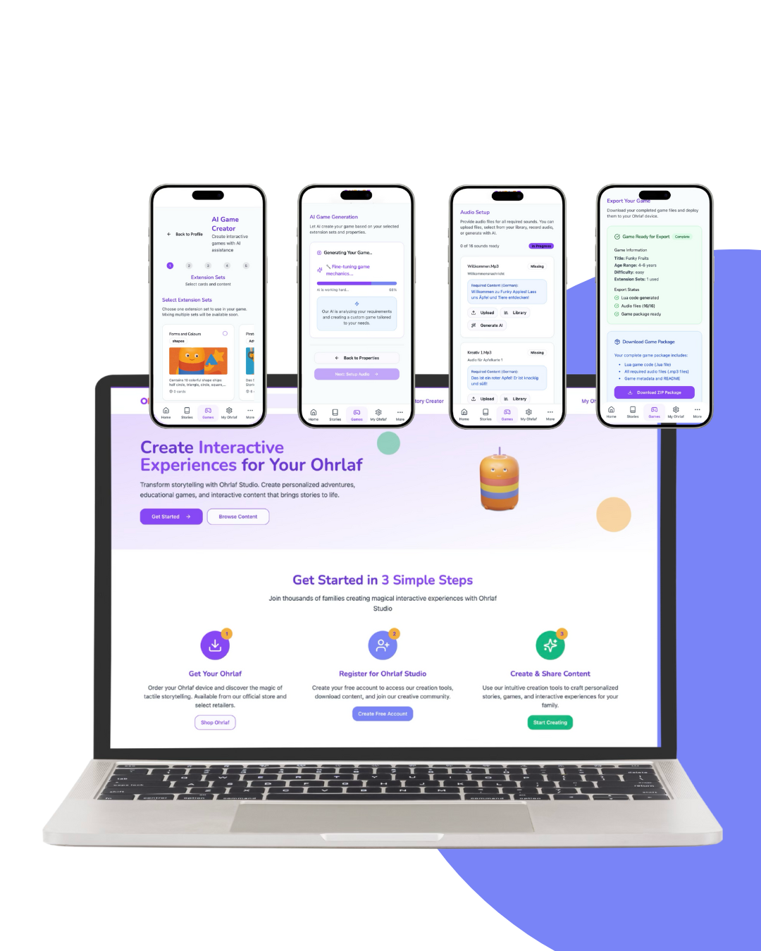 Mit Ohrlaf Studio machen wir genau das möglich: eine Plattform, auf der Geschichten, Lernspiele und Klangwelten für Ohrlaf entstehen und geteilt werden können.
